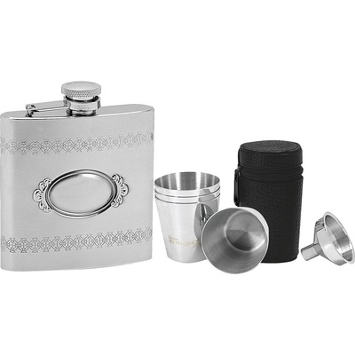 Kapesní placatka 97080 z nerez oceli, sada se čtyřmi pohárky. Kvalitní nerezová placatka na alkohol může být krásný dárek pro muže i ženy pro jakoukoliv příležitost. Tato...