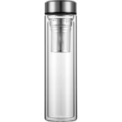 490210.00 KAMILLE Skleněná termo láhev 450ml vyrobená z varného borosilikátového skla s nerezovým sítkem a víčkem. Láhev s dvojitou stěnou je extrémně lehká a zároveň je...
