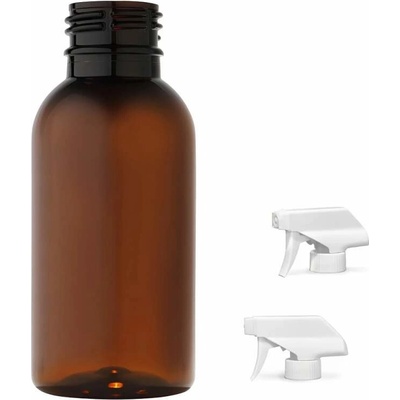 Praktická hnědá plastová lahvička o objemu 100 ml s černým uzávěrem. Ideální pro kosmetiku, farmacii, potraviny i domácnost.