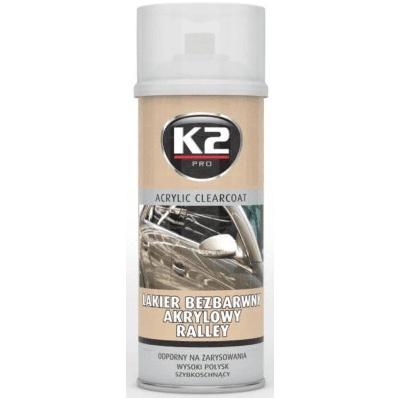 K2 Bezbarvý akrylový lak Rally 400 ml. Rychleschnoucí, účinný transparentní akrylový lak s vynikající přilnavostí a odolností proti mechanickému poškození. Dává povrchu lesk....