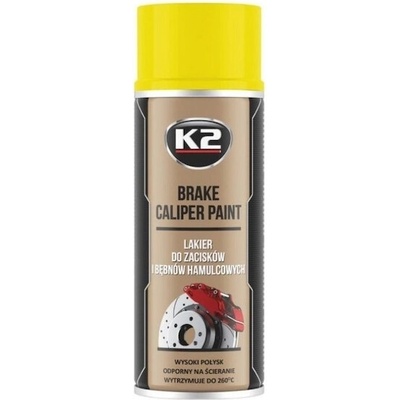 K2 Lak na brzdové třmeny žlutý 400 ml Vysokoteplotní lak na brzdové třmeny s vysoce kvalitní pryskyřicí. Lesklý ochranný nátěr, který je odolný vůči prachu, chemikáliím, solím...