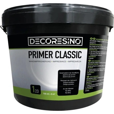 DECORESINO PRIMER CLASSIC je impregnace na stěny vhodná pod dekorativní produkty DECORESINO. PŘÍPRAVA POVRCHU: Výrobek aplikujte na soudržný, čistý a suchý povrch....
