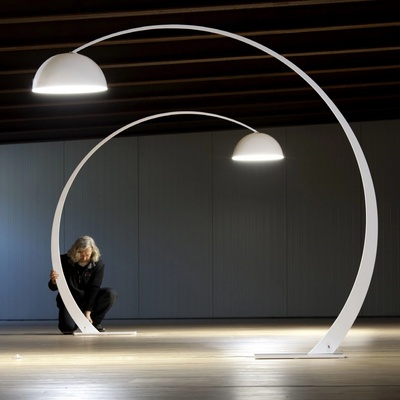 Stilnovo Oxygen: výkonná stojací oblouková lampa s unikátní technologií Opti-light pro rozptyl světla. Vyrábí italský výrobce Stilnovo, autor designu: Pio e Tito Toso z roku 2017.