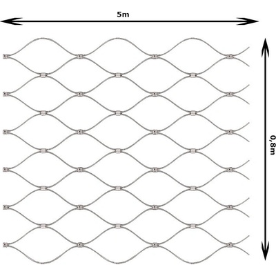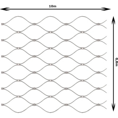 Lanková síť se sponami se používá jako výplň zábradlí, nebo plotových polí. Lanka o tloušťce 2mm jsou vyrobená z kvalitní nerzi AISI316. Oka o rozměrech 60x104mm jsou vzájemně...