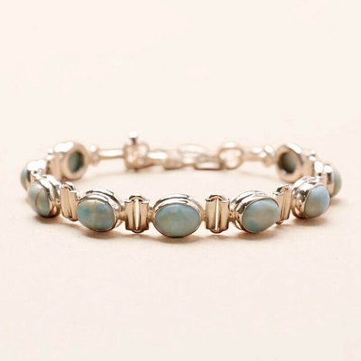 Výjimečný náramek ze stříbra s kabošony vzácného larimaru. Výrazný šperk, který každého okouzlí a nikdo jej na vaší ruce nepřehlédne. Ag 925. Kupujete přímo vyobrazený...