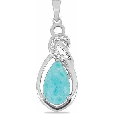 Larimar přívěsek rhodiované stříbro s krásným a kvalitním kabošonem larimaru z naší Larimar Rhodium line. Přívěsek je osazen kubickými zirkony pro nepřehlédnutelný třpytivý...