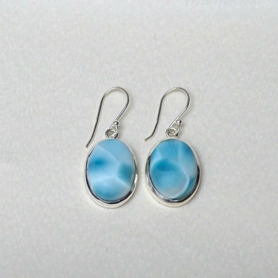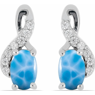 Larimar náušnice rhodiované stříbro s krásnými a kvalitními kabošony larimaru z naší Larimar Rhodium line. Kameny larimaru jsou pečlivě vybrané se zřetelně modrým vybarvením....