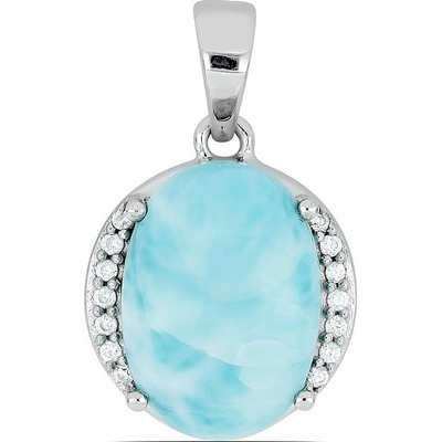 Larimar přívěsek rhodiované stříbro s krásným a kvalitním kabošonem larimaru z naší Larimar Rhodium line. Přívěsek je osazen kubickými zirkony pro nepřehlédnutelný třpytivý...
