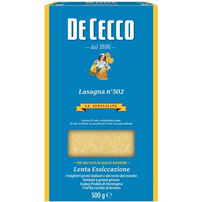 Lasagne semolinové Lze je použít bez předvaření. Jsou vyráběny podle staré tradice pouze z nejlepší italské krupice z tvrdé pšenice a čisté pramenité vody. Pomalé a šetrné...
