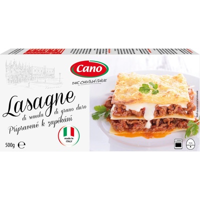Lasagne di semola - lasaně semolinové rovné Cano 500g Lasaně jsou italské těstoviny ze semoliny z tvrdé pšenice (Triticum durum). Jednotlivé rovné pláty jsou v suchém tvaru 18...