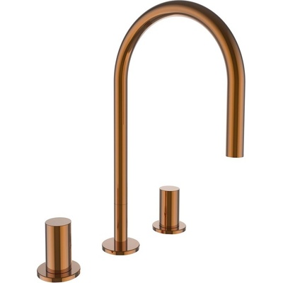 Umyvadlová tříotvorová stojánková baterie, otočný výtok 165 mm, průtok 5,7 l/min, bez automatické výpusti, PVD zlatorůžová. Bez odpadní zátky. Otočné raménko. Včetně přívodních...