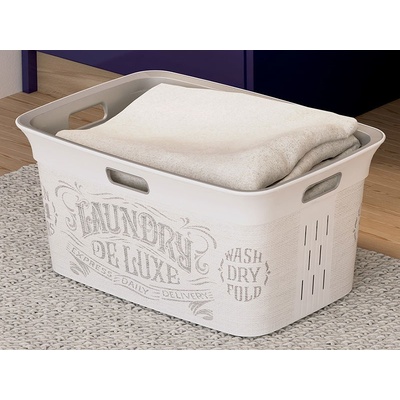 Koš na prádlo má kapacitu 45 litrů. Díky postranním rukojetím se snadno přenáší i maximálně naplněný. Je dodáván v šedém provedení s potiskem. Koš na prádlo Chic Basket...