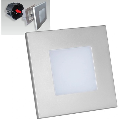 LED stříbrné orientační svítidlo vestavné, vhodné ke schodům, 0,6W, IP20, 230V do krabic KU 68, Studená bílá LED svítidlo vestavné na 230V užívané nejčastěji jako orientační osvětlení, nejčastěji jako osvětlení ke schodům nebo chodeb. Svítidlo je rozložitelné na 2...