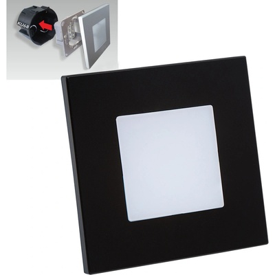 LED černé orientační svítidlo vestavné, vhodné ke schodům, 0,6W, IP20, 230V do krabic KU 68, Studená bílá LED svítidlo vestavné na 230V užívané nejčastěji jako orientační osvětlení, nejčastěji jako osvětlení ke schodům nebo chodeb. Svítidlo je rozložitelné na 2 části....
