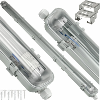 Souprava spojuje dvě úsporné LED trubice 150 cm s výkonem 20 W a odolné zářivkové těleso s krytím IP65, takže vytváří spolehlivé a cenově dostupné řešení pro osvětlení garáží, dílen, sklepů, skladů i venkovních prostor. LED trubice nahrazují běžné fluorescenční...