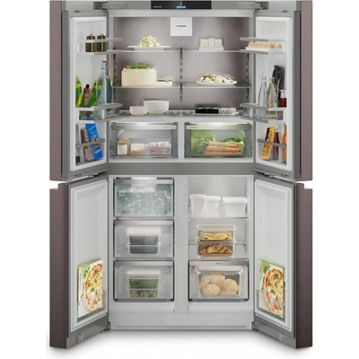 Stylová černá čtyřdveřová lednice pro velkou rodinu — elegantní, přehledná a připravená zvládnout každou domácí párty.