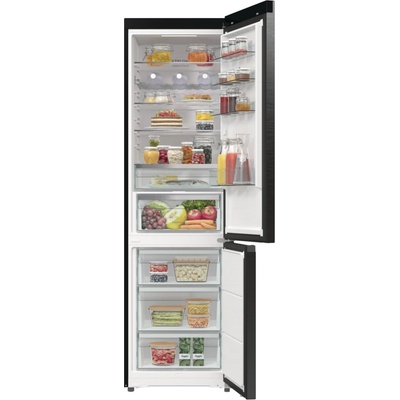 Stylová černá lednice, která drží potraviny déle čerstvé a usnadní každodenní skladování.
