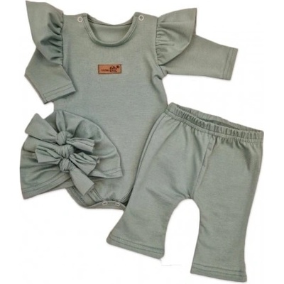 \nKrásná 3-dílná kojenecká a dětská souprava s legínami do zvonu.\nTato okouzlující třídílná sada je dokonalou kombinací elegance a pohodlí pro malou princeznu.\nBody s volánky na rukávech a nádherné