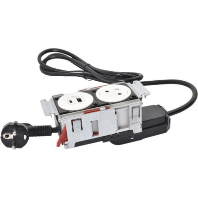 Vestavný zásuvkový blok Incara Flip-up 2x230V, USB A+C 15W, RJ45 Car.6 FTP a HDMI černá/kov 8M Legrand 654851