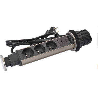 INCARA Tower 60, 3x zásuvka 2P+T, 1x nabíječka USB A+C 15W, zapuštěná montáž, koncový kryt z nerezové oceli, výsuvný systém, 2m kabel s vidlicí 2P+T, Legrand, 654970
