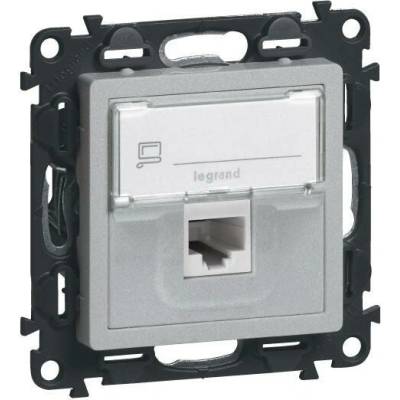 Legrand 75C6UH1 jednonásobná datová zásuvka Cat. 6 v barvě hliníku ve stylu Valena Life. Upevnění pomocí šrouby.