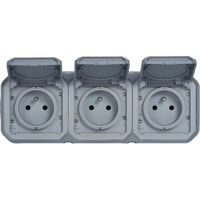 Nové Plexo IP55 zásuvka 3x 2P+T horizontální předkonektorová šedá montáž na povrch komplet.