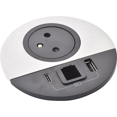Vestavná zásuvka Incara Disq 80 1x230V, USB A+C 15W, kabelová vývodka, černá/kov Legrand 654708