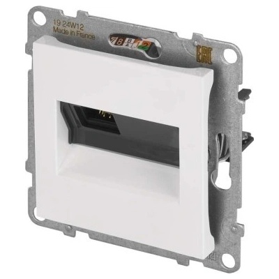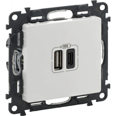 Legrand 721189 jednonásobná zásuvka s USB-C nabíjením v bílé barvě ve stylu Suno. Upevnění šrouby nebo drápky. Obsahuje bezšroubové svorky.