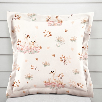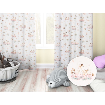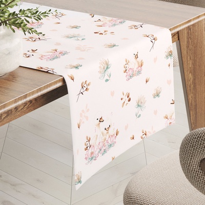Bavlněný obdélníkový dekorační ubrus na stůl se vzorem roztomilých labutí v pastelových barvách mezi lekníny na bílém podkladu. Je ušitý z hustě tkaného 100% bavlněného plátna s...