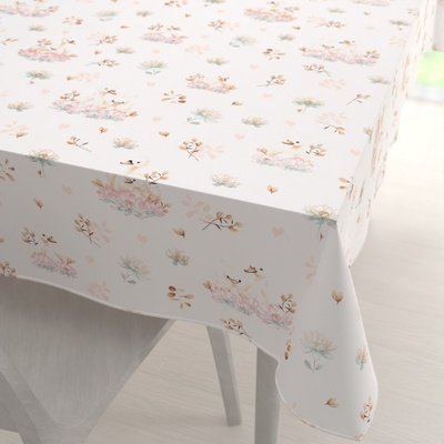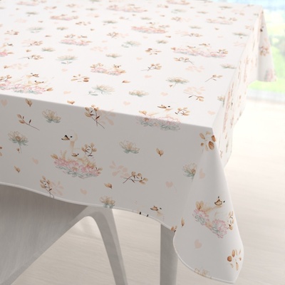 Bavlněný obdélníkový dekorační ubrus na stůl se vzorem roztomilých labutí v pastelových barvách mezi lekníny na bílém podkladu. Je ušitý z hustě tkaného 100% bavlněného plátna s...