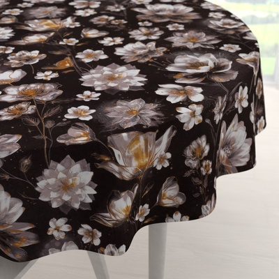 Bavlněný kulatý dekorační ubrus na stůl se vzorem magických leknín na temně hnědém podkladu. Je ušitý z hustě tkaného 100% bavlněného plátna s certifikátem zdravotní...