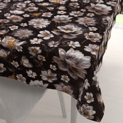 Bavlněný čtvercový dekorační ubrus na stůl se vzorem magických leknín na temně hnědém podkladu. Je ušitý z hustě tkaného 100% bavlněného plátna s certifikátem zdravotní...