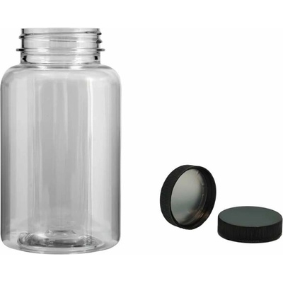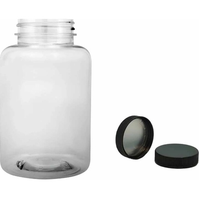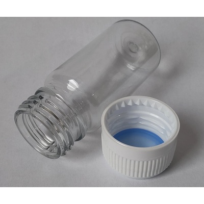 Plastová čírá lékovka s obsahem 35 ml. široké hrdlo - 2 cm Stabilní lékovka je komplet i z jisticím víčkem - všeobecné využití. ( Vhodné jak na koření, tak i na tobolky, sirupy,...