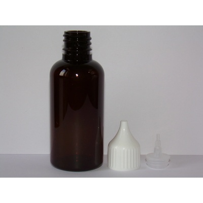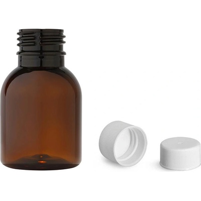 PET lékovky, plastové lahvičky na potraviny, léky. Plastová lahvička, lékovka hnědá s bílým uzávěrem 50 ml. Plastové lahvičky a lékovky prodáváme o objemu 10 ml, 35 ml, 50 ml,...