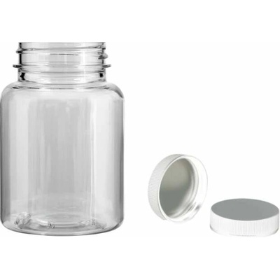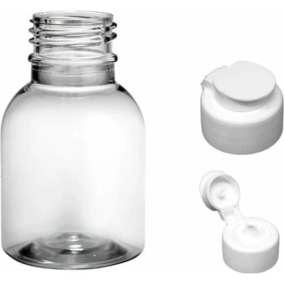 Plastová lahvička, lékovka čirá s uzávěrem. Plastové lahvičky a lékovky prodáváme od objemu 10 ml. PET, PE plastové lahvičky, lékovky na potraviny, léky.