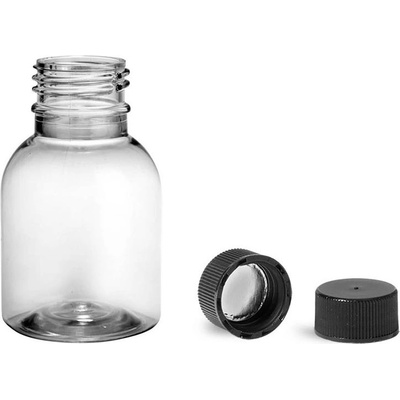PET, PE plastové lahvičky, lékovky na potraviny, léky. Plastová lahvička čirá s černým víčkem PCO 28/410 Tera 50 ml. Plastové lahvičky a lékovky prodáváme o objemu 10 ml, 35...