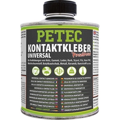 Univerzální kontaktní lepidlo, pro velké i malé plochy v exteriéru a interiéru, 350 ml v plechovce se štětcem – Petec 93935 - osvědčené kontaktní lepidlo pro lepení dřeva, gumy, kůže, korku, plstě, tvrdého PVC, pěnových hmot, butylkaučuku, keramiky, kovů apod. -...
