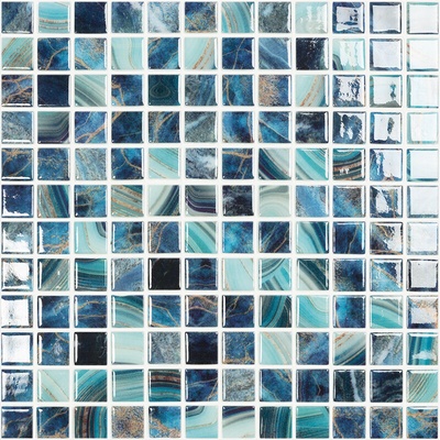 Skleněná mozaika modrá 25NAT5604 s lesklým povrchem a čtvercovým tvarem jednotlivých prvků mozaiky.Výborně se uplatní jako obklad do bazénu, do sauny a wellness.Je vhodná pro...