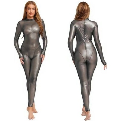 dámský průsvitný lesklý overal " catsuit "dlouhé rukávy zip na zádechmateriál : nylon, spandexvelikost XL