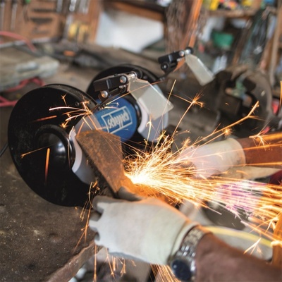 Silná a spolehlivá stolní bruska, která zvládne broušení, ostření i leštění v dílně.