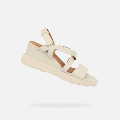 Dámská obuv na klínku Geox Spherica EC6 s překříženými pásky zajišťujícími pevné uchycení během celodenní chůze.: Klínková podešev → zvyšuje stabilitu při pohybu na různých...