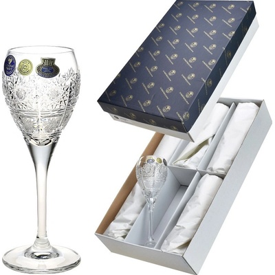 Sklenice panákovky z českého křišťálového skla. Baleno v modré dárkové krabici. Balení sklenic se liší oproti fotce, je bez saténu. Ručně broušeno českými mistry skláři...