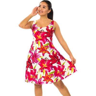 Šaty s kapsami Ava Lilie - bílá s červenou Originální letní šaty z lehkého a příjemného viskózového hedvábí se chlubí nádhernými sytými barvami a překrásným autorským vzorem...