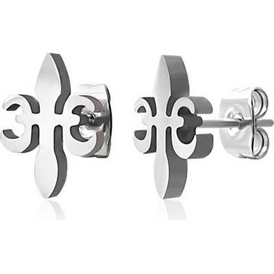 Náušnice z oceli v podobě kříže z lilií - symbol FLEUR DE LIS.