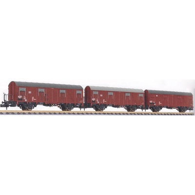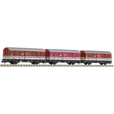 Set obsahuje tři vozy s prkennými stěnami a plošinou pro brzdaře. Jednotlivé vagóny se liší drobnými detaily. Kinematika krátkého spřáhla s šachtou dle NEM355. Minimální...