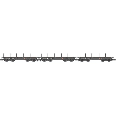 Třídílná souprava podvozkových plošinových vozů pro těžkou dopravu typu SSy 45 DB. Provozní stav z roku 1960. Provozní čísla: 961 013, 961 015 a 961 019. Délka přes nárazníky...