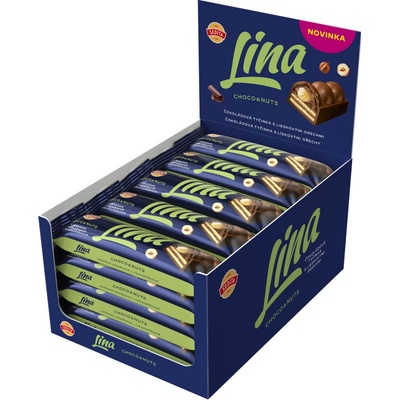 -- Oplatky s kakaovou krémovou náplní (50 %) s lískovými ořechy v kakaové polevě.Lina Lískooříšková je jemný a krémový oříškový dezert, který okouzlí svou plnou chutí lískových oříšků.Ideální pro chvíle, kdy si chcete osladit den – ať už jako svačinka,…