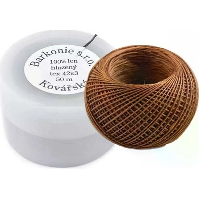 Univerzální pevná kovářská - lněná nit značky Barkonie upředena ze 100% lnu v hnědé přírodní barvě. Tyto kvalitní české nitě můžete použít také na šití těžké konfekce, která...