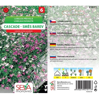 Lobelka převislá kaskádovitá směs barev se hodí hlavně na balkóny či do květináčů, ze kterých může lobelka viset dolů. Světle modré, růžové či bílé květy rozzáří...