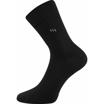 Sada 3 pack pánských hladkých společenských ponožek značky Lonka v černé barvě s volným lemem a s antibakteriální ochranou díky obsahu iontů stříbra v materiálu silproX. V...